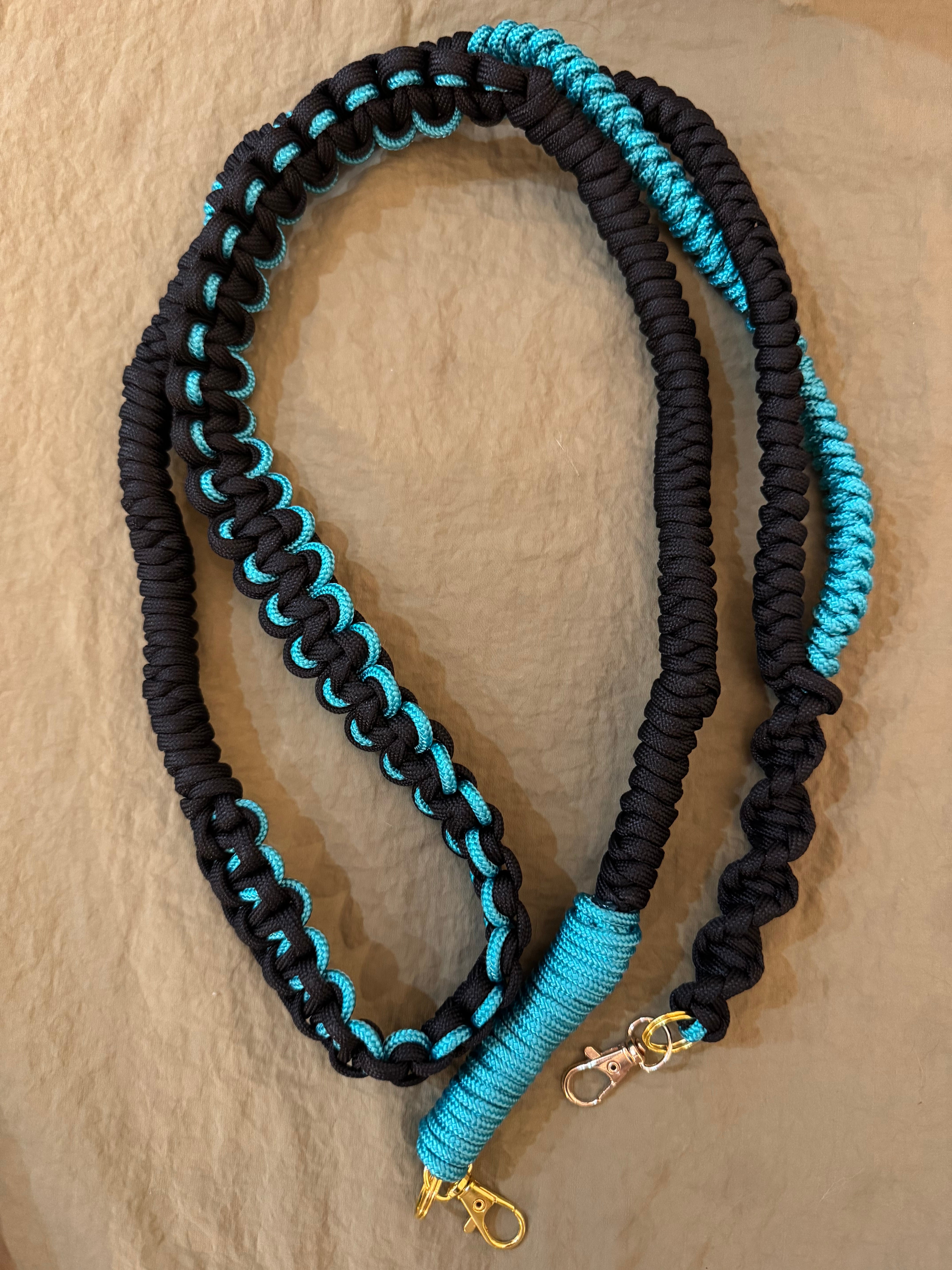 パラコードのロングストラップ 金具ゴールド black×turquoise
