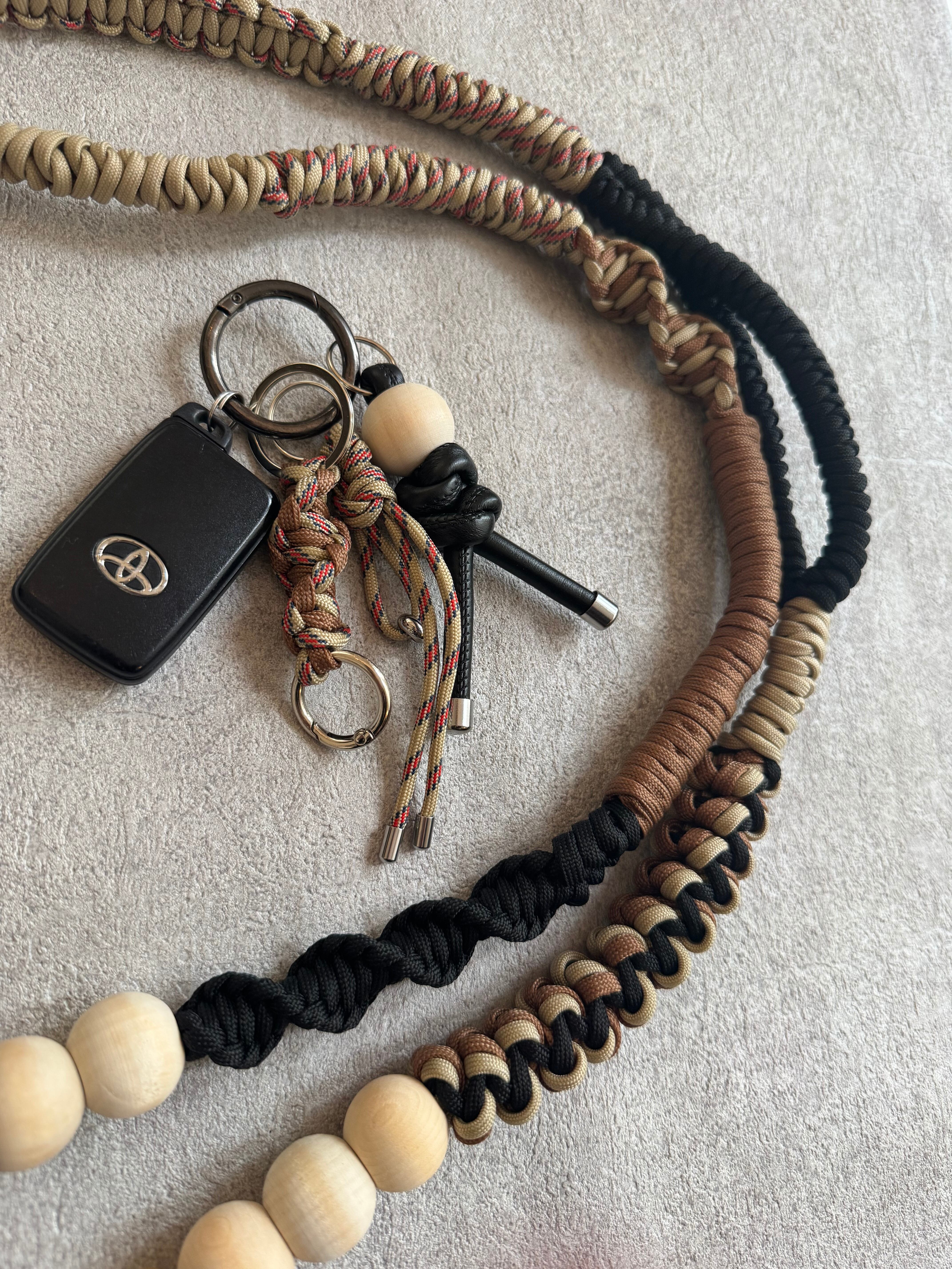 色鮮やかなカラーコンビネーションが目を引くWood ballとパラコードのストラップ、おしゃれなアクセントでいつものコーディネートを特別なものに。