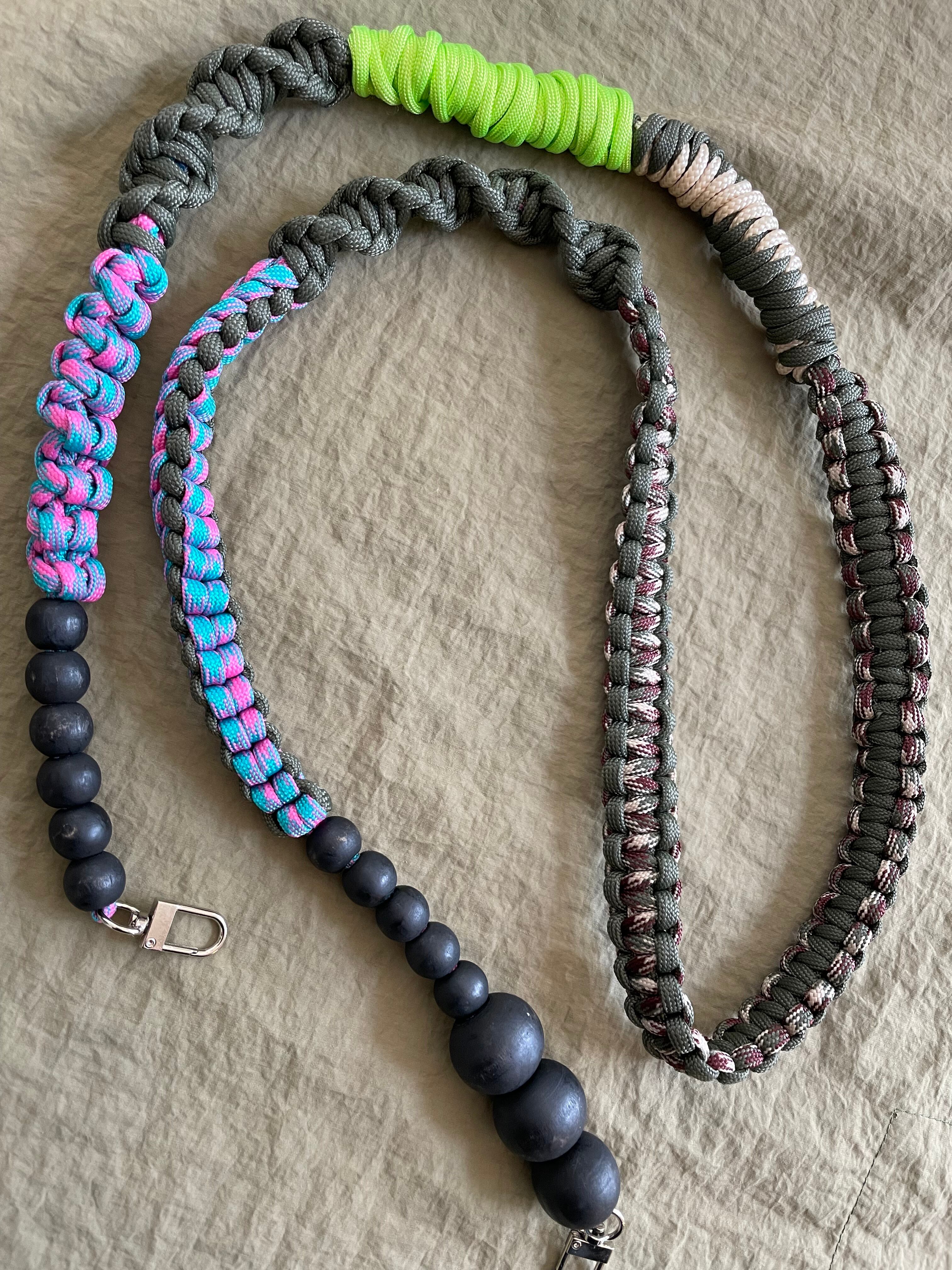 木の風合いとパラコードのカラフルさが調和した、一点もののストラップをお楽しみください。