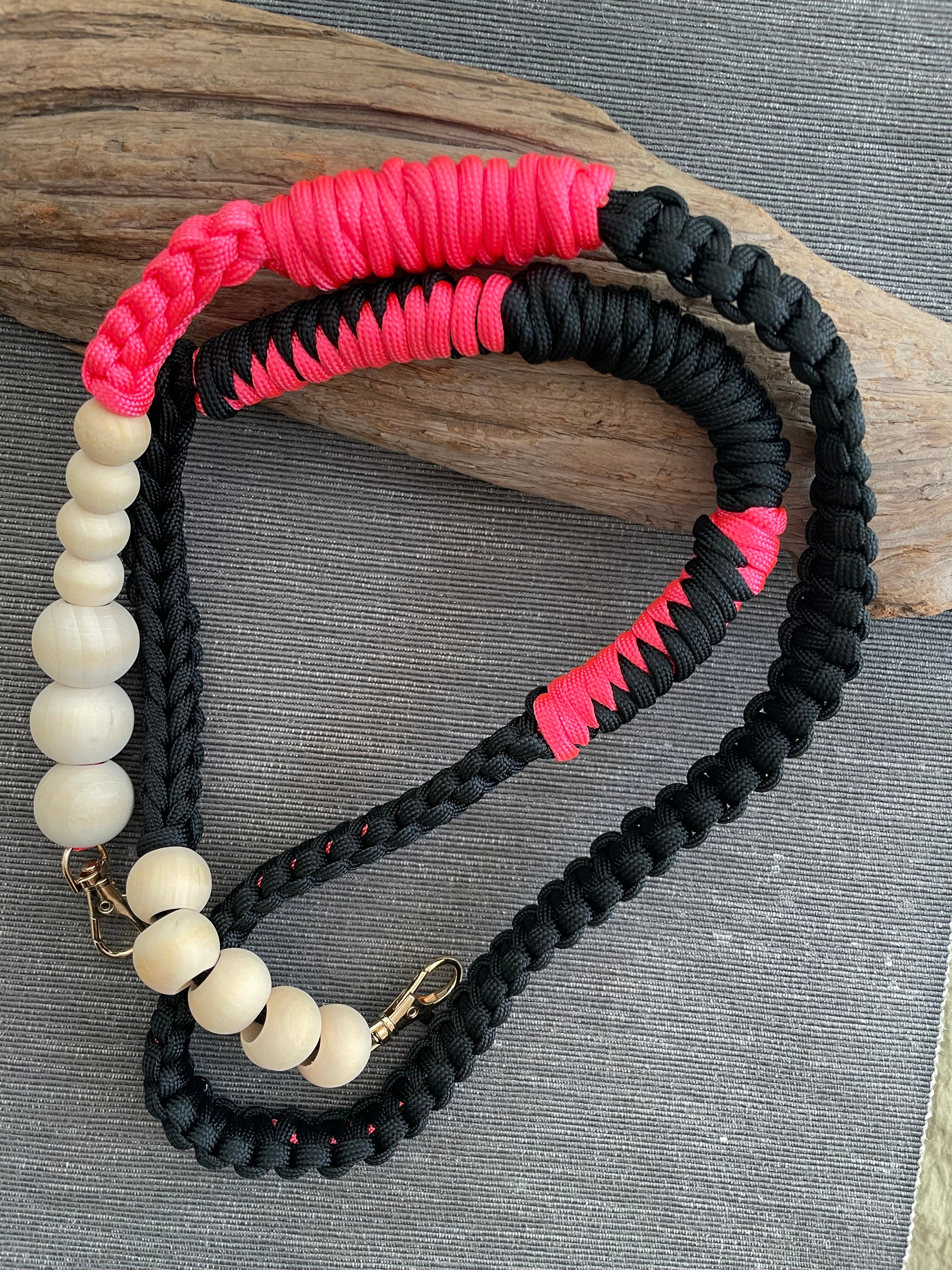 Wood ballとパラコードのストラップ 金具ゴールド BLACK×neonpink