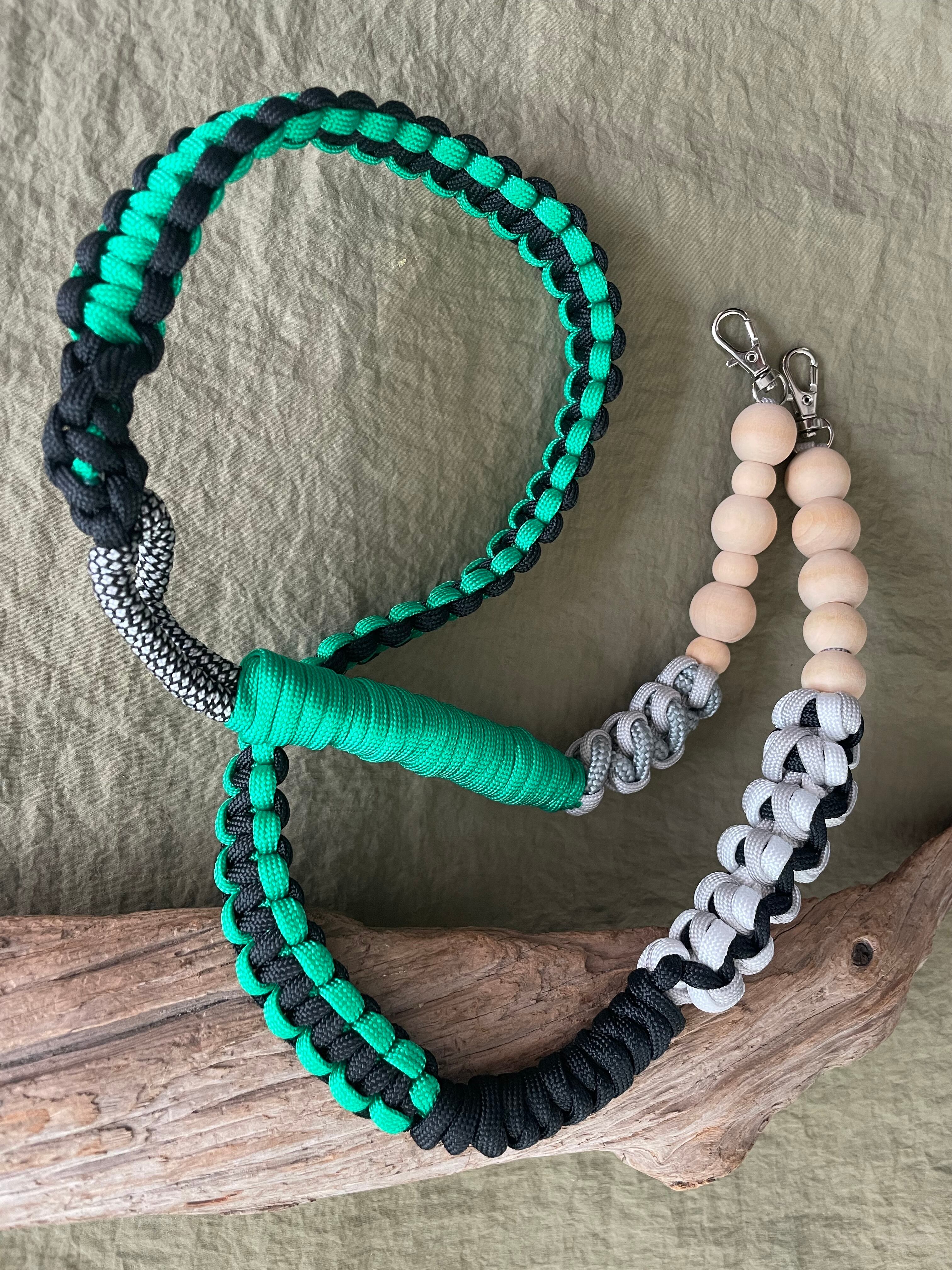 木の風合いとパラコードのカラフルさが調和した、一点もののストラップをお楽しみください。