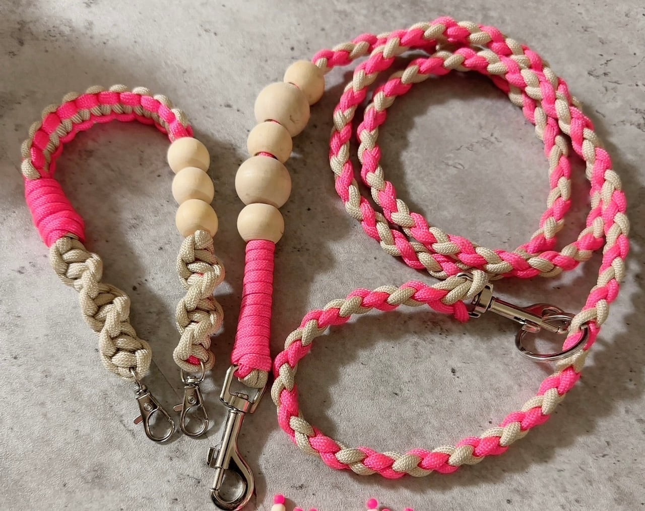 ワンちゃん♡お揃いできる!パラコードとWoodallのリード 金具シルバー pink