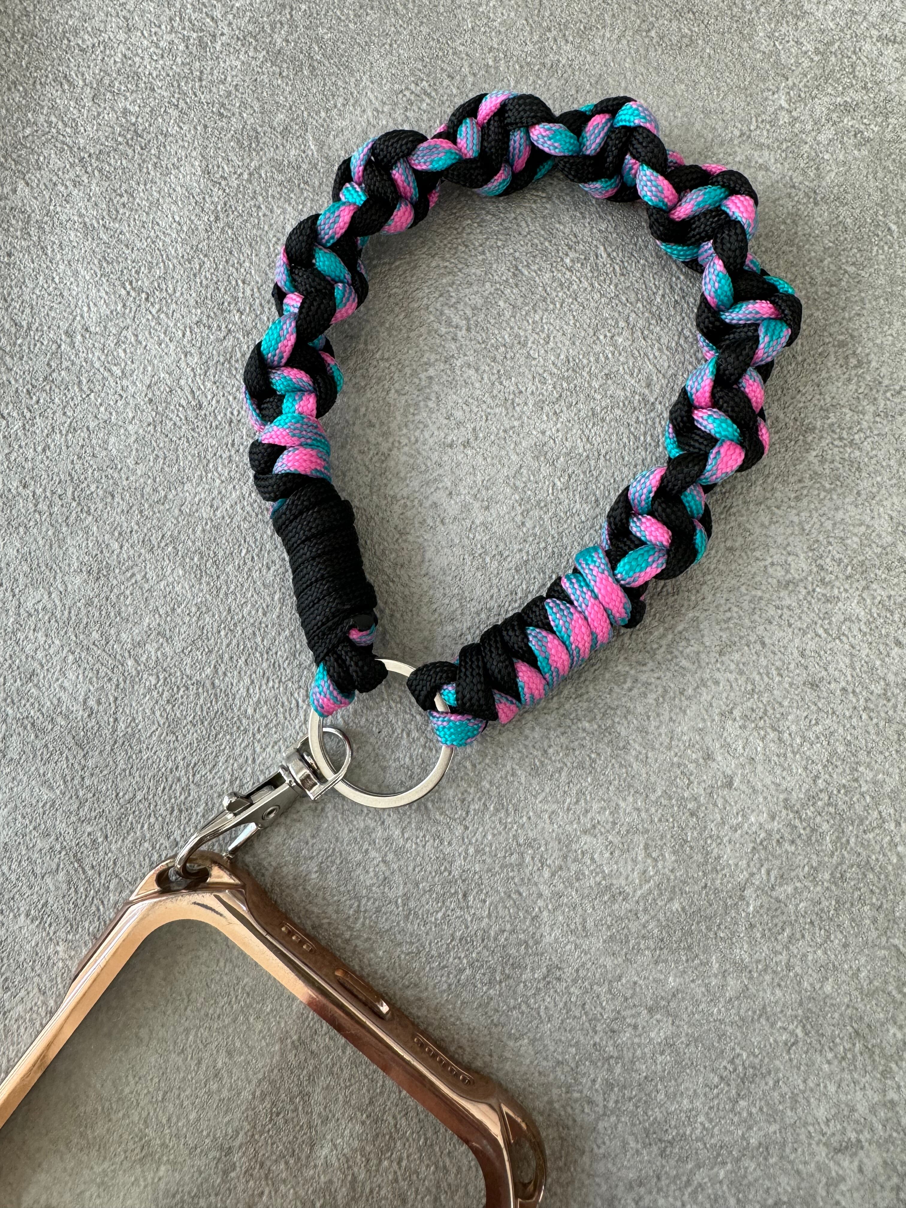 ONE handle パラコードのストラップ 金具シルバー black×turquoise